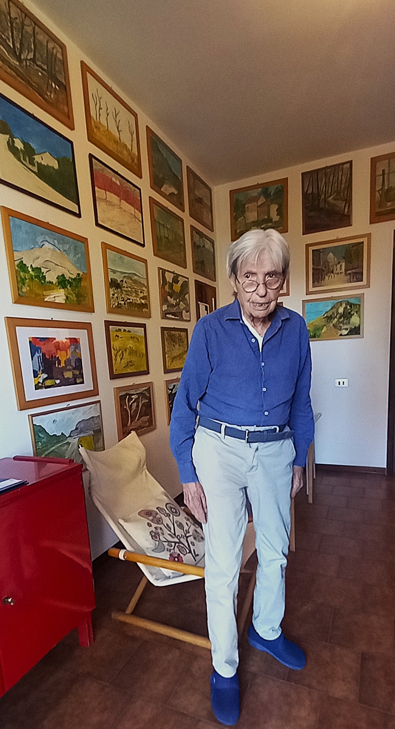 Arturo Bosoni nella galleria domestica dei propri dipinti