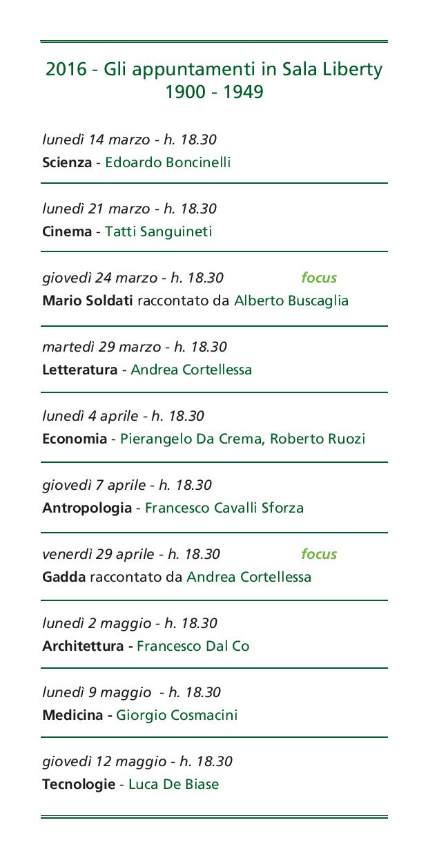 2016 - Gli appuntamenti in Sala Liberty