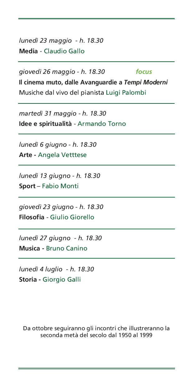 Una rassegna ideata da Luciano Tellaroli. Se nel primo decennio del Novecento qualcuno avesse provato a immaginare il futuro del secolo, avrebbe avuto molti indizi: dalla pubblicazione delle teorie di ...