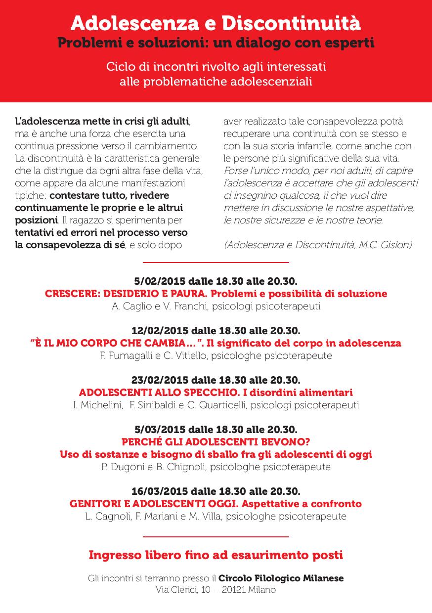 Problemi e soluzioni: un dialogo con esperti. Ciclo di incontri rivolto agli interessati alle problematiche adolescenziali.