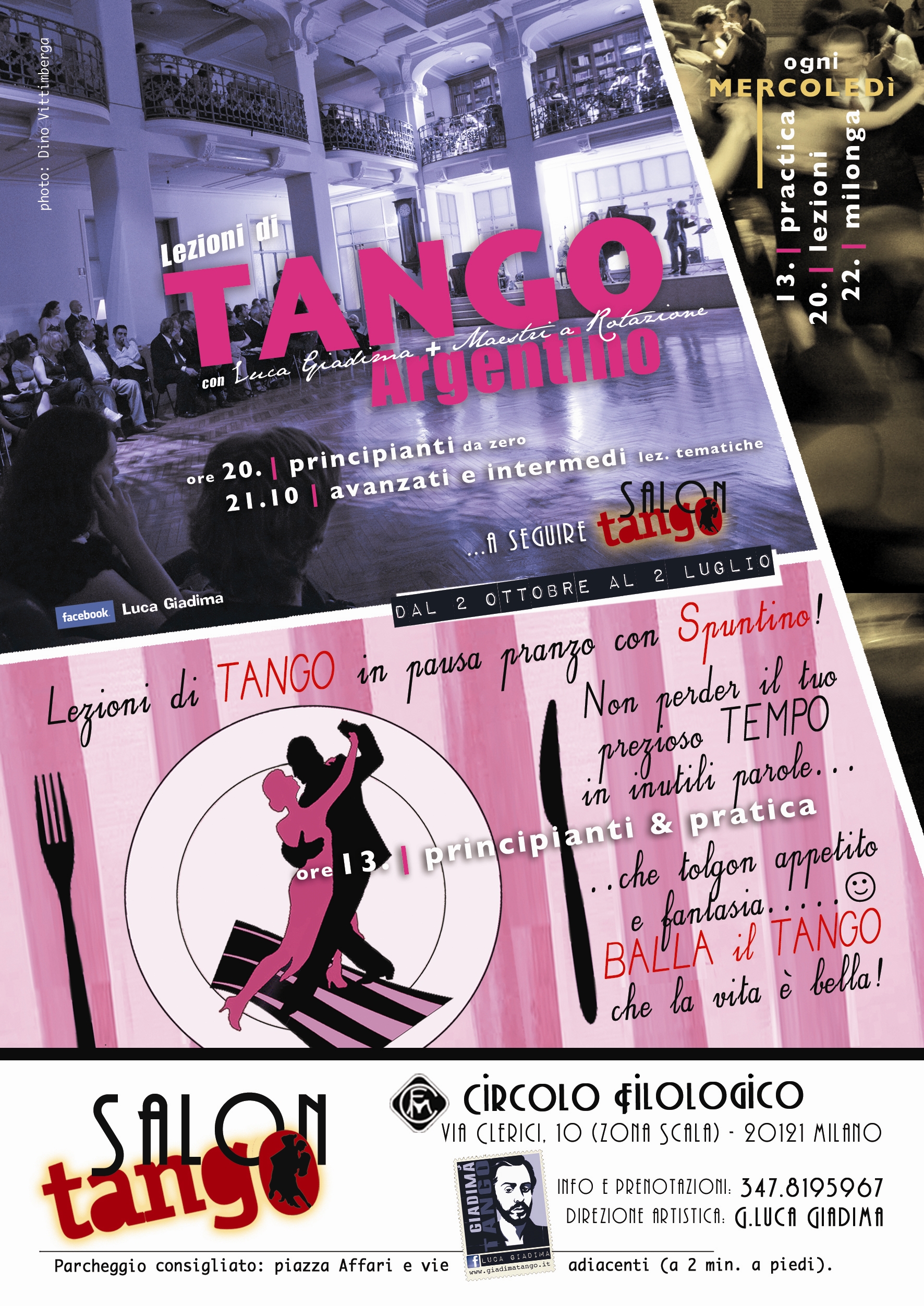 Corsi di tango argentino in pausa pranzo e dalle 20 alle 22 e corsi di milonga dalle 22 alle 2