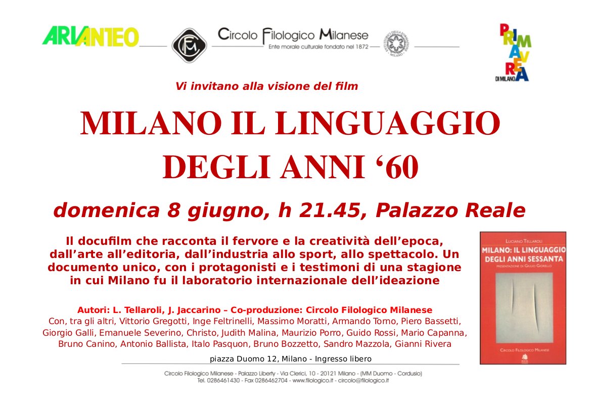 Il docufilm che racconta il fervore e la creatività dell’epoca, dall’arte all’editoria, dall’industria allo sport, allo spettacolo. Un documento unico, con i protagonisti e i testimoni di una stagione in cui Milano fu il laboratorio internazionale dell’ideazione